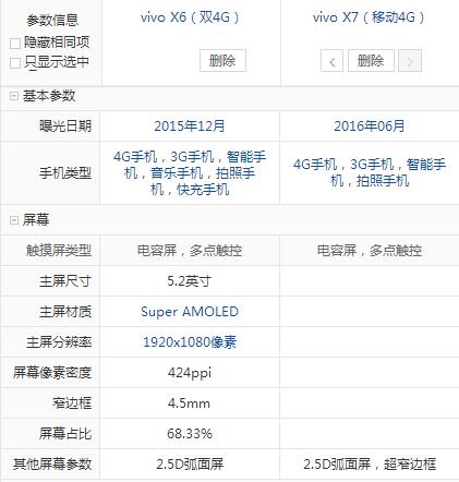 vivo X7和vivo X6配置參數(shù)詳細(xì)對比: