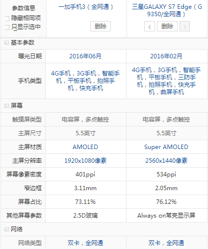 一加手機3和三星Galaxy S7 Edge區別對比評測