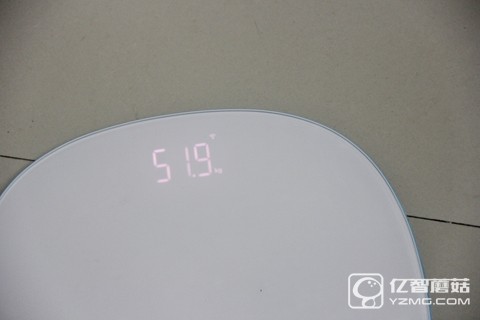 秤面的上方配備了一塊高亮度的LED指示燈,不過平時是看不到指示燈的,只有在開機承重時才會顯示出來,同時指示燈和WIFI信號也在上面顯示。