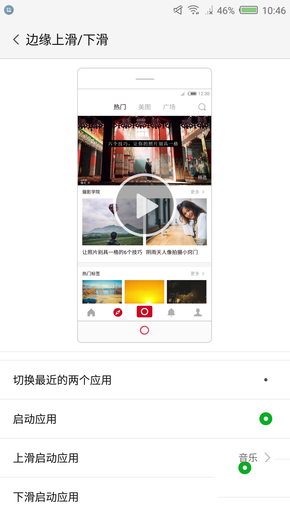 全新FiT 2.0交互技術(shù)包括單邊滑動(dòng)、雙邊滑動(dòng)、內(nèi)滑、雙擊以及反復(fù)滑動(dòng),單邊滑動(dòng)可以實(shí)現(xiàn)切換最近的兩個(gè)應(yīng)用或者啟動(dòng)應(yīng)用(需提前設(shè)置好);雙邊滑動(dòng)則是調(diào)節(jié)屏幕亮度,在觀看視頻、玩游戲時(shí),可以快速調(diào)整屏幕亮度;雙擊屏幕則為返回上一層界面,單邊反復(fù)滑動(dòng)清理后臺(tái)。