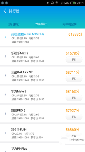 得益于驍龍820內(nèi)置驍龍X12 LTE調(diào)制解調(diào)器,實(shí)現(xiàn)全網(wǎng)通3.0,支持4G+、雙卡雙待盲插、VoLTE技術(shù),同時(shí)當(dāng)主卡使用移動(dòng)、聯(lián)通4G網(wǎng)絡(luò)時(shí)候,副卡突破性支持聯(lián)通3G網(wǎng)絡(luò)語音通話,大大提高通話信號(hào)質(zhì)量。下面我們看看nubia Z11在各大跑分軟件的表現(xiàn):