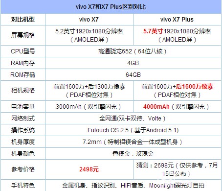 oppo R7s和vivo X7配置參數(shù)區(qū)別對(duì)比評(píng)測(cè)