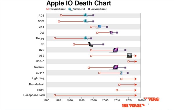 報(bào)道中提到,蘋果對(duì)接口的選擇上一直都領(lǐng)先其他公司。通常蘋果支持一種接口時(shí)間為15年,但耳機(jī)孔是個(gè)例外,因?yàn)閺?984年開始支持一直到現(xiàn)在,也就是說已經(jīng)過去了32年。