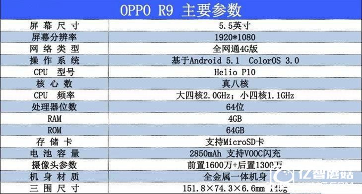 配置方面,OPPO R9正面配備一塊5.5英寸1080p AMOLED顯示屏,像素密度為401ppi;采用全金屬一體機身,正面1600萬+后置1300萬像素攝像頭,配備4GB內存+64GB機身存儲,支持MicroSD存儲卡拓展,最大支持128GB;搭載的處理器是來自聯發科的Helio P10八核64位處理器,并且支持雙卡雙待全網通,三圍尺寸為151.8×74.3×6.6mm。
