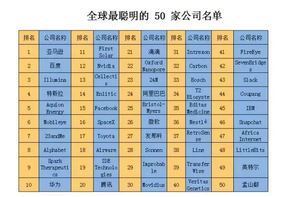 今年中國企業在“最聰明五十強公司”榜單里拿下了5個席位,超過了以往年份。這5家給中國人爭光的創新公司分別是:百度,第2名;華為,第10名;騰訊,第20名;滴滴出行,第21名;阿里巴巴,第24名。