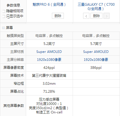 三星 C7和魅族pro6配置參數(shù)詳細對比: