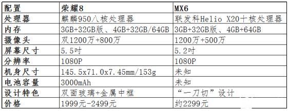 魅族MX6和榮耀8區(qū)別對比評測 哪款性價(jià)比更高?