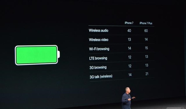 蘋果官方給出的數據顯示,iPhone 7電池使用時間比iPhone 6S最長增加2小時,iPhone 7 Plus電池使用時間比iPhone 6S Plus最長增加1小時。