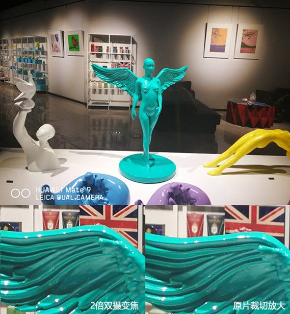 除了日常成像的顯著提升,第二代徠卡雙攝成像系統(tǒng)還支持2倍雙攝變焦。我們也為大家簡析一下Mate 9上的雙色原理:由于彩色+黑白的攝像頭焦距相同,兩者獲取的畫面并無太大差異,而黑白傳感器擁有更高的2000萬像素,也就可以通過將其進(jìn)行1000萬的像素裁切,獲得2倍變焦的效果,再將彩色傳感器獲取的相應(yīng)部分(理論應(yīng)當(dāng)是600萬像素的色彩信息)色彩進(jìn)行合成填充,通過插值算法合成輸出1200萬像素的圖片。