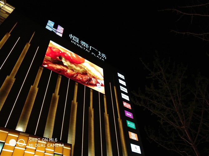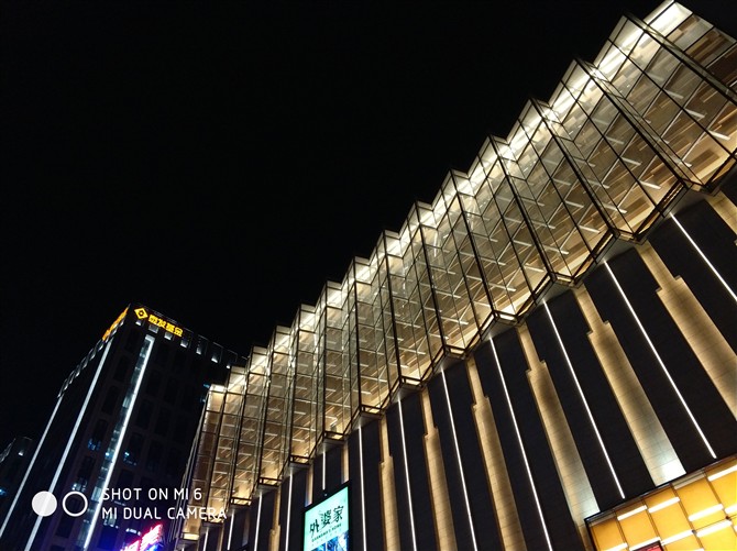 在夜間弱光的情況下,小米6的表現也比較不錯。雖然夜間情況下選擇不同的測光點,其明暗程度也不盡相同,不過在平均測光的情況下,小米6也能還原景物的色彩。