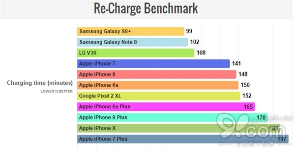 作為對比,Galaxy Note 8/S8+只用了區(qū)區(qū)100分鐘上下就搞定了。