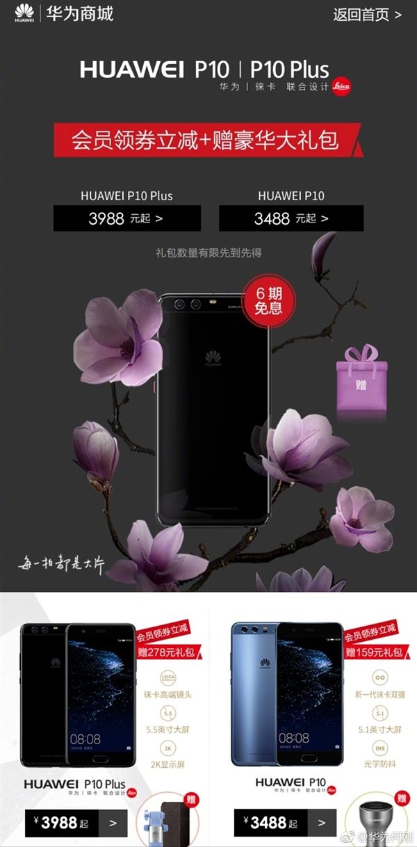 華為P10 4+64GB版本僅售3188元 未來可升安卓8.0