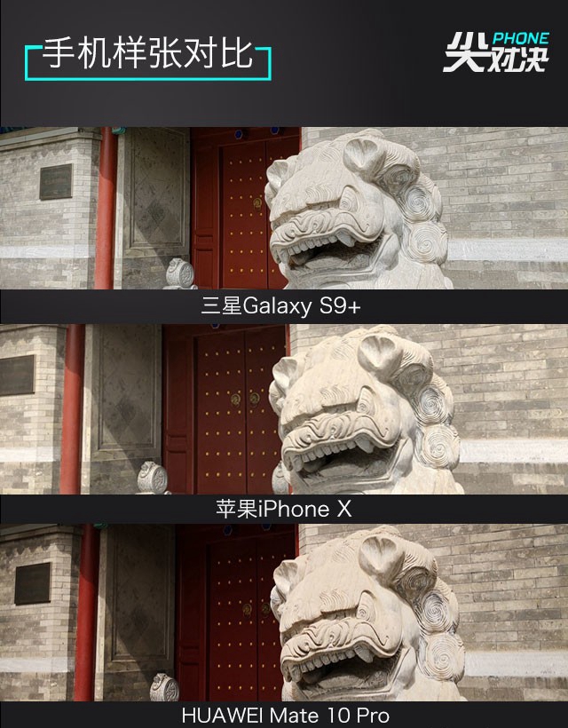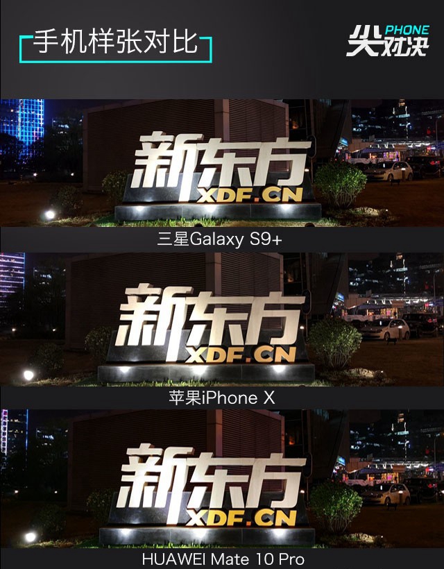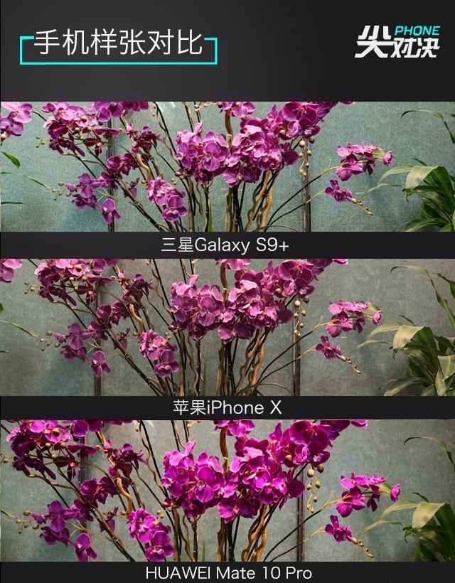 從樣張可以看出,三星Galaxy S9+的夜拍表現最為突出,噪點把控最好;HUAWEI Mate 10 Pro的色彩和細節把控最為到位,出片略顯艷麗;就綜合表現看,蘋果iPhone X的實拍表現也非常出色,但相對另外兩款手機優勢并不明顯。
