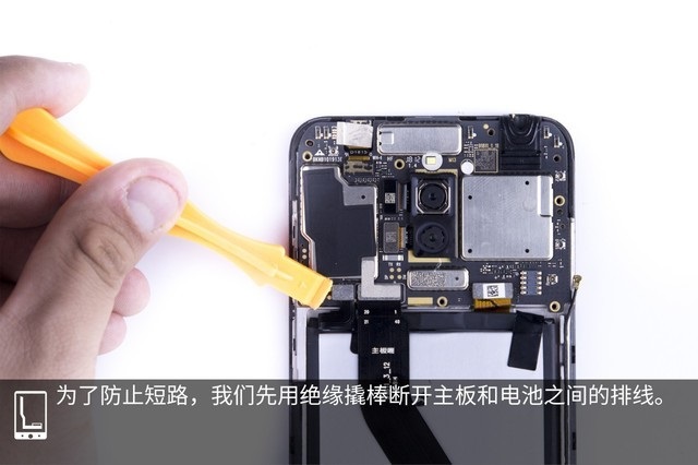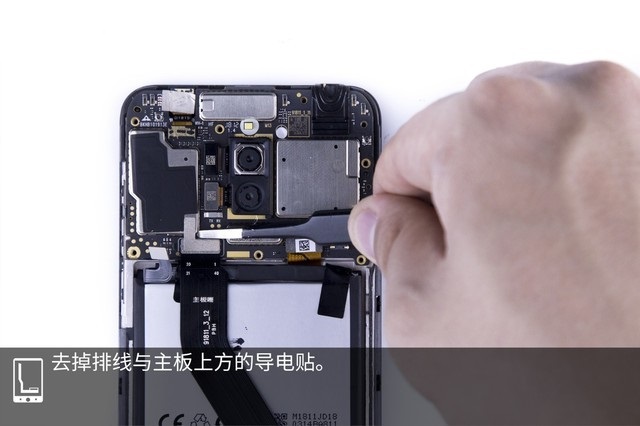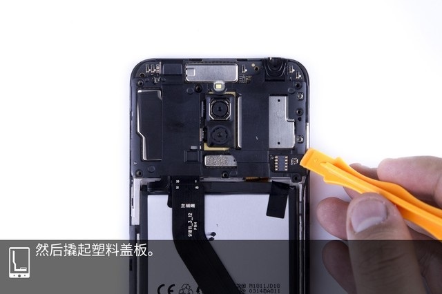 魅藍6T內部是最常見的三段式設計,下面我們來拆主板。需要注意的是,魅藍6T主板的螺絲為黑色,比較便于識別,不易搞混。以下是主板拆解組圖。