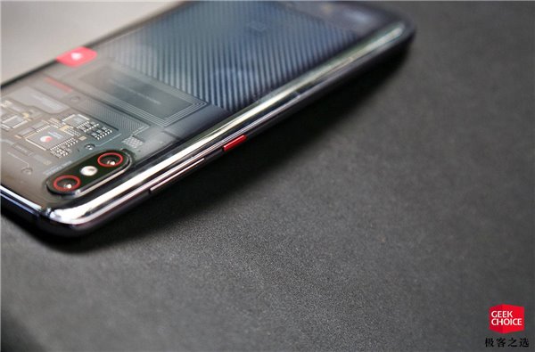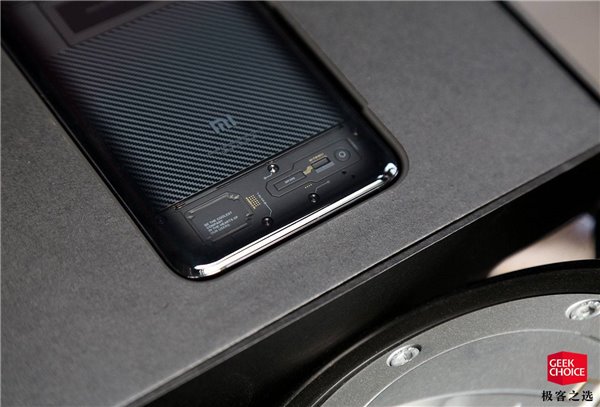 出于功能性的考慮,手機主板的上方通常都要配備屏蔽罩和散熱貼紙,直接把這些東西通過透明后蓋的方式呈現出來并不美觀。之前htc在U11+、U12+透明版本的處理方式是把后蓋的一小塊以透明的方式露出來,而小米希望把整個后蓋的平面部分都做成透明(后蓋四周的曲面部分是不透明的),為了最大程度上照顧美感,就選擇了這種額外加一個裝飾主板的做法。