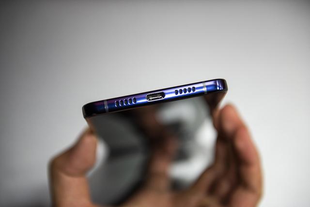 機(jī)身側(cè)面方面,堅(jiān)果Pro2S取消了堅(jiān)果系列一慣的“一條金線(xiàn)”設(shè)計(jì)(炫光藍(lán)、炫光紅及白色版本取消“金線(xiàn)”,黑色則保留了“金線(xiàn)”設(shè)計(jì)),機(jī)身厚度縮減至 7.15mm, 配色方面增加了全新的炫光藍(lán)及炫光紅版本。