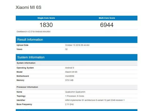 小米上一代旗艦手機小米6是小米近幾年來最為成功的旗艦產品之一,自發布以來就有著非常好的口碑,生命周期遠超小米5、小米5s,由它衍生出的小米Note 3也非常成功。近日,一款型號為小米6S的新機在網上曝光,從Geekbench跑分成績來看,該機或搭載驍龍835處理器。