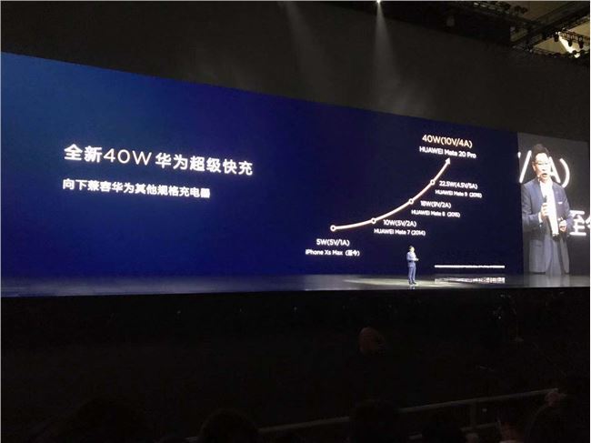 續航方面,Mate20、Mate20 Pro、Mate20 X 的電池容量分別為 4000mAh、4200mAh、5000mAh。充電方面,Mate20、Mate20 X 搭載的是華為常規的 SuperCharge 超級快充,充電功率 22.5W,而 Mate20 Pro 則搭載了半小時即可充電 70% 的 40W 有線快充和 15W 無線快充。另外 Mate20 Pro 還可以為其他支持 Qi 標準的手機進行無線充電。