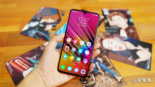 而在正面,vivo X23 星芒版和普通版的差別不大,均搭載一塊 6.41 英寸水滴全面屏,并支持第四代屏幕指紋識別技術、超廣角拍攝、Jovi 語音助手等功能。
