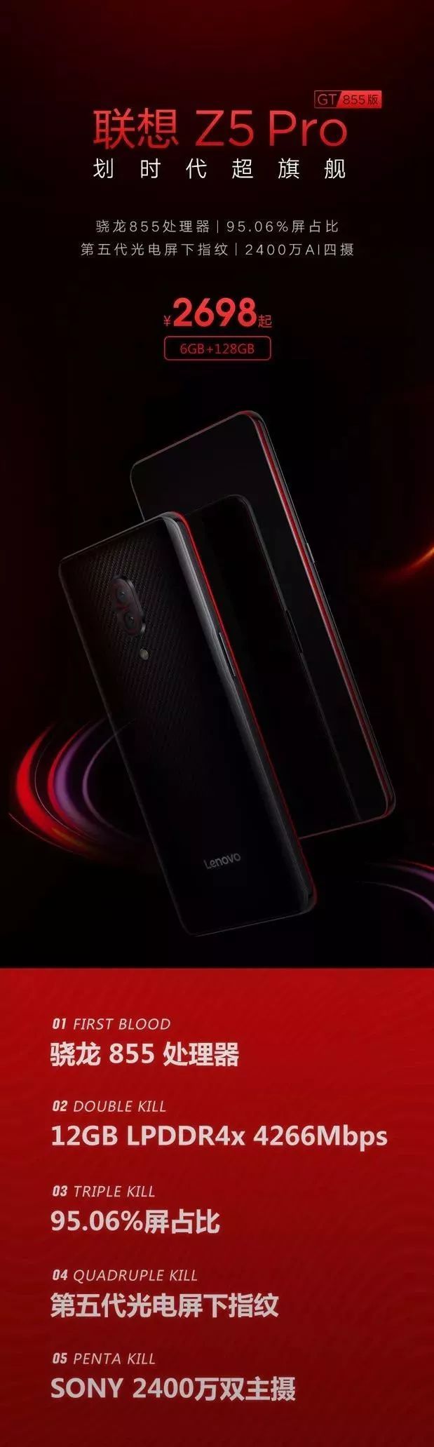 首款驍龍855手機聯想Z5 Pro發布:首發12GB大內存,售價2698元起