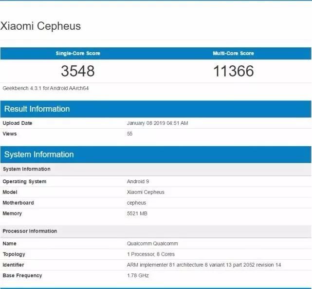 此前GeekBench跑分網(wǎng)站上出現(xiàn)了一款代號(hào)為“Cepheus”的小米新機(jī),該機(jī)可能是即將發(fā)布的小米9,它搭載的是高通驍龍855移動(dòng)平臺(tái)。高通早前就稱2019年共有30部手機(jī)將搭載高通驍龍855處理器,自然小米9自然也包括其中。