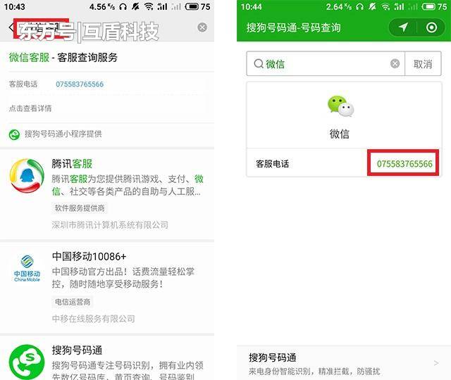 5、在搜索框中輸入【微信客服】,點(diǎn)擊搜索即可,搜索出的結(jié)果中,將會(huì)顯示客服電話,我們點(diǎn)擊撥打客服熱線,說(shuō)明原因,尋求幫助,與對(duì)方進(jìn)行溝通。