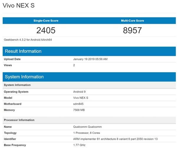 驍龍845跑分(機(jī)型:vivo NEX)