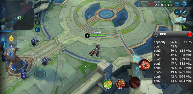 如上圖所示,從CPU的狀態來看,整個游戲過程八核全開,標準“真八核”表現,還并以較小的負載輕松維持整場游戲的極限畫面。