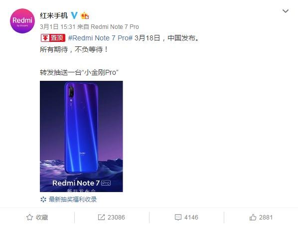 紅米在今年1月份發(fā)布了品牌獨立后的首款產(chǎn)品——紅米Note 7,同時還宣布還會有紅米Note 7 Pro手機,將在年后發(fā)布。而在2月28日,紅米在印度召開發(fā)布會,發(fā)布紅米Note 7 Pro,就在我們可惜不在國內(nèi)發(fā)布的同時,紅米手機官方微博在3月1日宣布,紅米將在3月18日下午兩點在北京舉行新品發(fā)布會,正式發(fā)布紅米Note 7 Pro。
