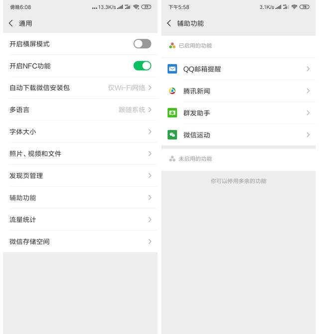 此項功能會將我們所看到的圖片或者視頻直接下載到微信文件里。這項功能可以通過"設置—通用—照片、視頻和文件"關閉。對那些沒興趣卻常推圖文的公眾號,可以直接取關。