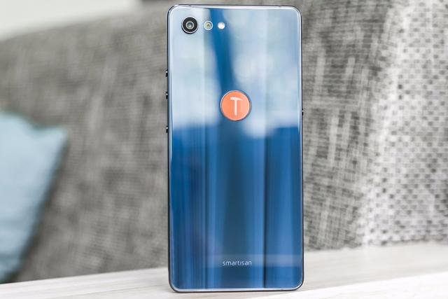 其實堅果Pro 2s的工業(yè)設(shè)計還是有著高水平的,機身后方采用特殊的副攝像頭隱藏式開孔,并且將LOGO與后置指紋模塊融合,配合特殊的鍍膜整機顏值絕對足夠。