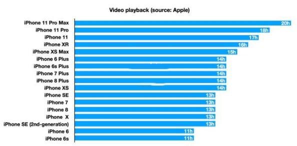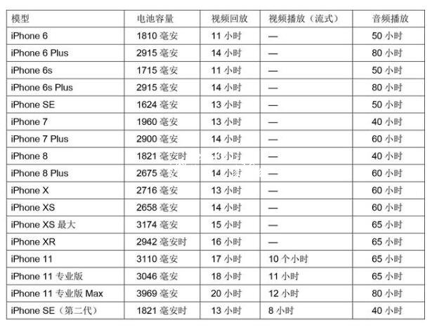 蘋果對(duì)不同機(jī)型間續(xù)航時(shí)間量化,是以視頻播放時(shí)長(zhǎng)為標(biāo)準(zhǔn),那么SE2 能達(dá)到哪種時(shí)長(zhǎng)?看看下表是不是很清晰了。