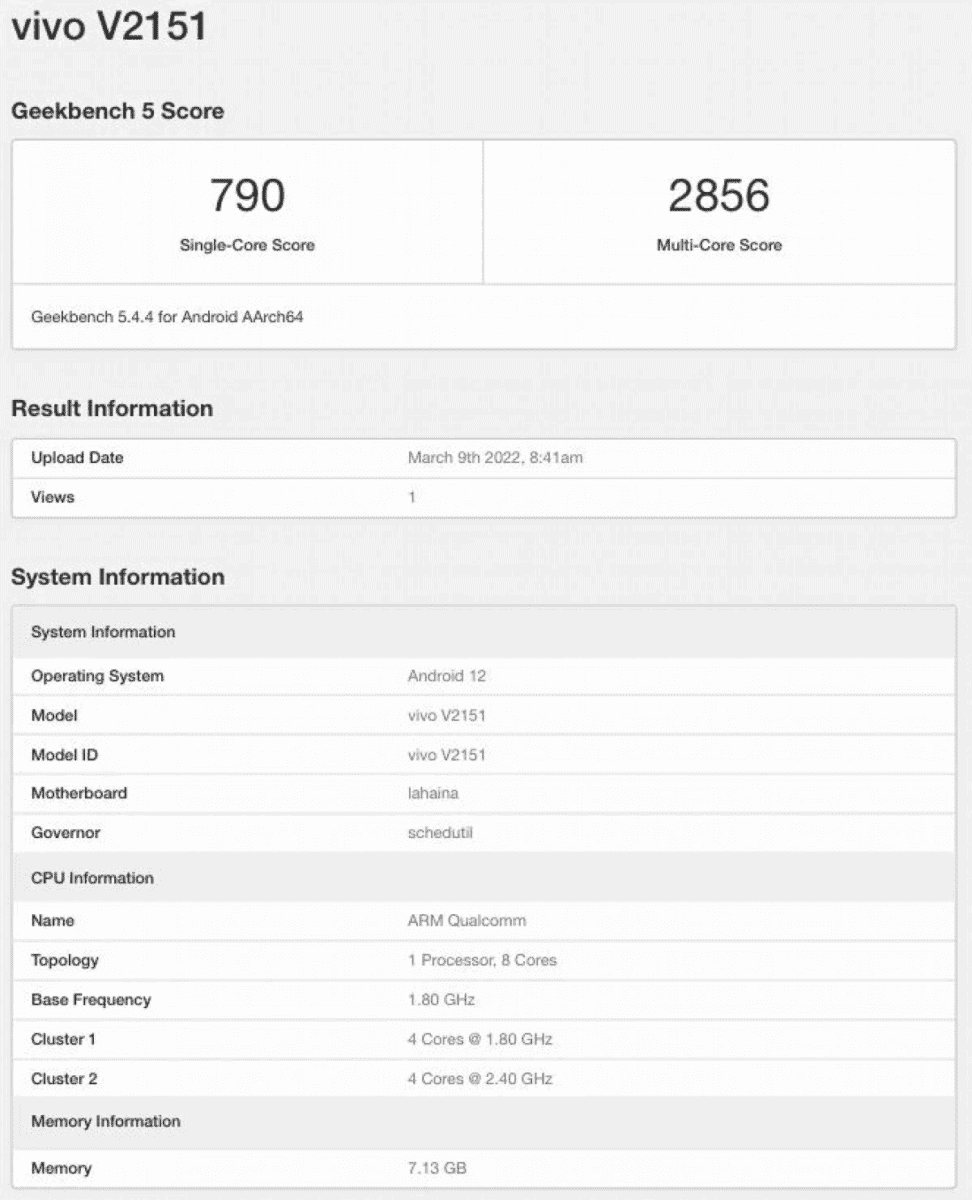 vivo T1 Pro 5G跑分曝光:配備8GB內(nèi)存,多核測試2859分