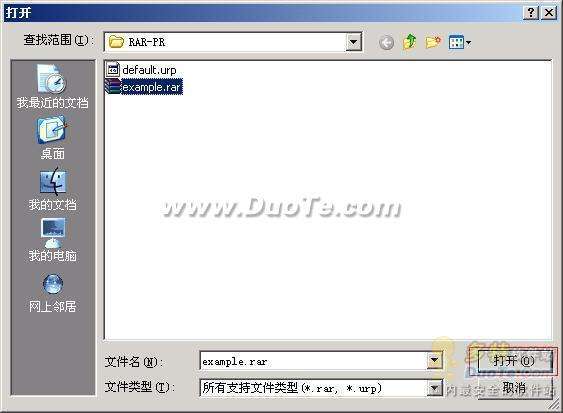 ”圖標,彈出打開對話框,在此對話框內選擇要破解的RAR文件,然后點擊“打開”按鈕。如圖3所示。