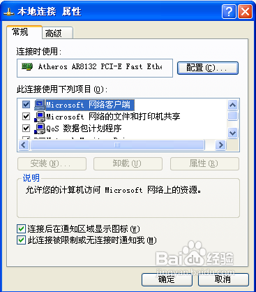 協議出錯,點開本地連接屬性。在常規選項卡里,點擊安裝,把客戶端,服務,協議,全部卸載在安裝一遍: