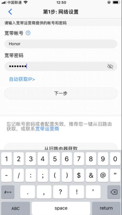 第一步:配置主路由。將光貓與榮耀分布式路由連接后通電,打開“華為智能家居”APP后,按照系統的提示,輸入寬帶賬號和無線網絡SSID號碼就可以了。