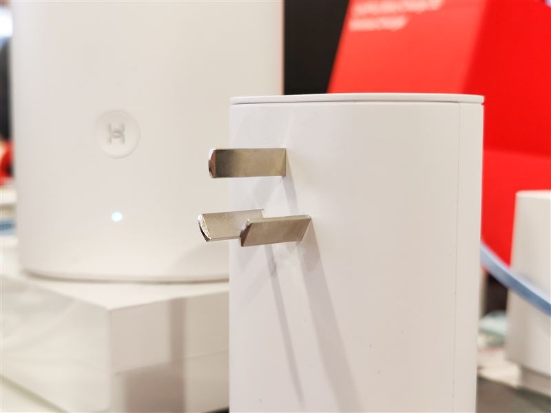 子路由上搭配三腳插頭 直接插在插座上就可以實(shí)現(xiàn)電力線連接