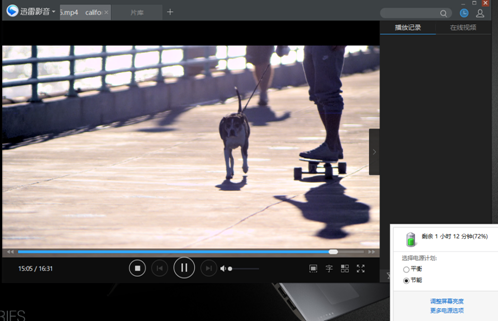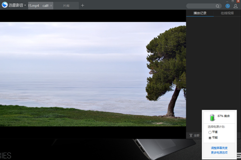 在播放前,我們看到筆記本的電量為87%,我們調節到節能模式,開始播放4K視頻。