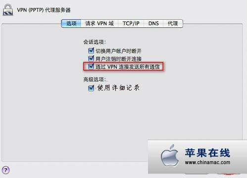 第五步:但是,別以為你什么都ok了,還有一些概念和一些高級的注意事項,瞧,我那個紅色的框框,你要點下看看噢。高級選項,注意看到那個紅色框框內的,要勾上“通過虛擬連接連接發送所有通信” ,然后點“好”。 然后 開始 “連接”。