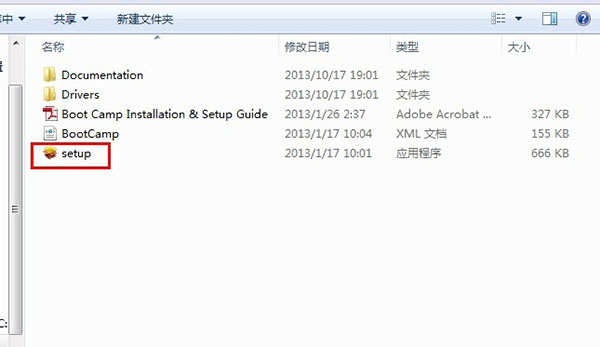 打開BootCamp文件夾,點擊Setup,如下圖: