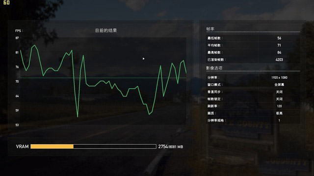 實測極高畫質下幀數最低56,最高84,平均71。全程暢玩無壓力,看來1070底子還是厚實。