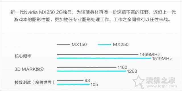 注:MX150顯卡分為低功耗版和滿血版,由于低功耗版性能更弱,但是溫度相對控制更好,以下參數對比的是MX150滿血版和MX250的區別。