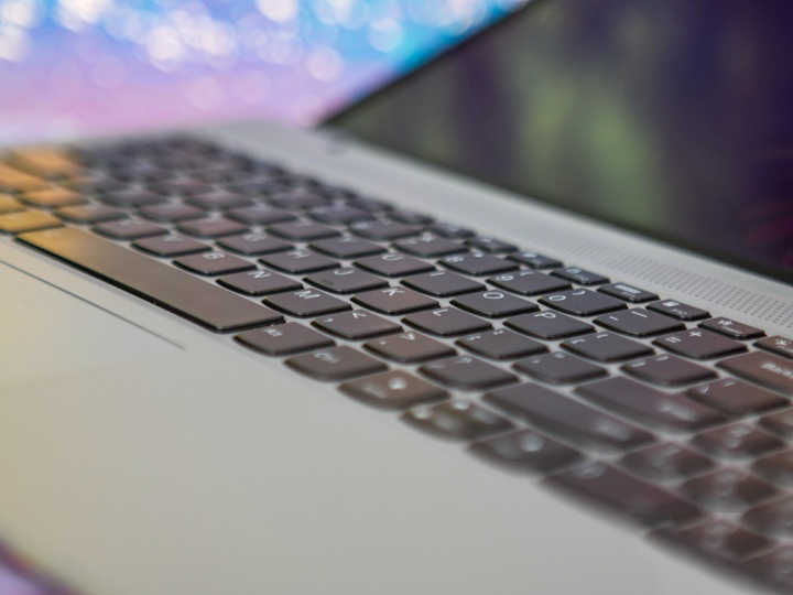 C面雖然為塑料材質,但采用了仿絨面效果,觸感柔軟舒適。C面鍵盤上部布置了經過杜比音效認證的雙揚聲器,在進行影音娛樂的時候可以帶來更好的視聽效果。另外還配備了電源指紋二合一按鍵,輕觸即可快速喚醒系統進入桌面。