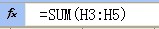 ② 在“總分”一欄(單元格H6)輸入求和公式:“=SUM(H3:H5)”,求出各科總和。