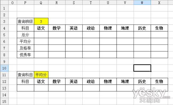 點擊Q3單元格,錄入公式“=班級項目查詢!B1”。點擊Q4單元格,錄入公式“=班級項目查詢!B2”。至此,基本的表格準備工作就算是完成了。