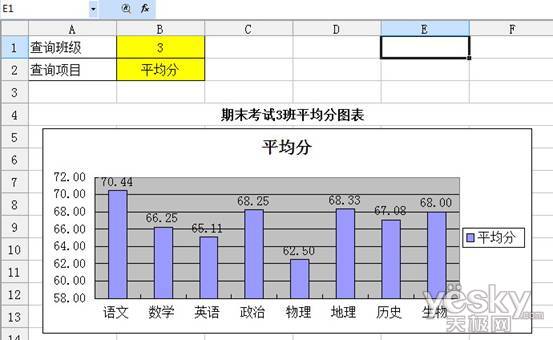 每次考試結束之后,都需要統計各班級學生的學習情況,如各班各學科的總分、平均分、及格率、優秀率等。一份包羅萬象的全面的表格固然不錯,但不夠直觀方便。最好能打造一份可以方便查詢的表格,并且查詢的結果還能用圖表的形式實時顯示。