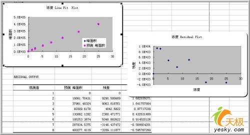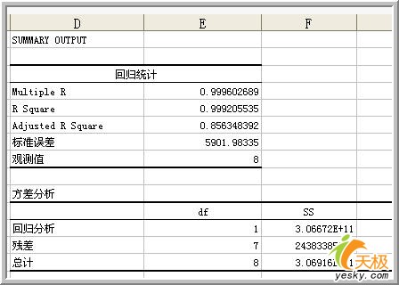 更多的信息在生成的表格中,詳細(xì)的參數(shù)項(xiàng)目完全可以滿(mǎn)足回歸分析的各項(xiàng)要求。下圖提供的是擬合直線(xiàn)的得回歸分析中方差、標(biāo)準(zhǔn)差等各項(xiàng)信息。