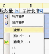 然后重新選擇“字符長度”的篩選圖標對話框的(全部),可以看到自然人數據已經被刪除。