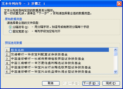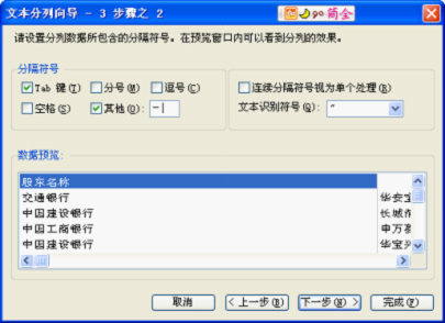 勾選“分隔符號”中的“其他”,后面輸入股東名稱字段中的分隔符“—”,下一步。