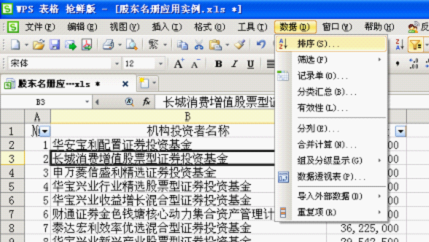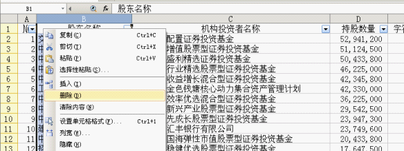 2、一般上市公司的股東都在萬名以上。現在我們想分析其機構投資者的持股情況;如果是一家基金公司旗下的幾只基金,我們還想了解一個每個基金公司的持股數量。該怎么辦呢?